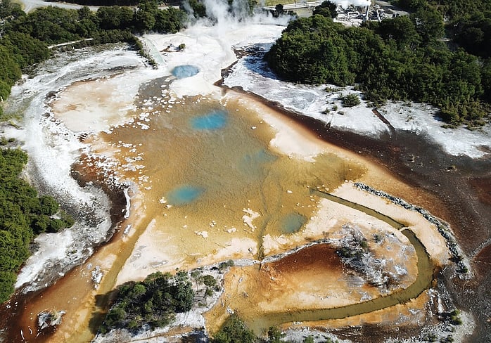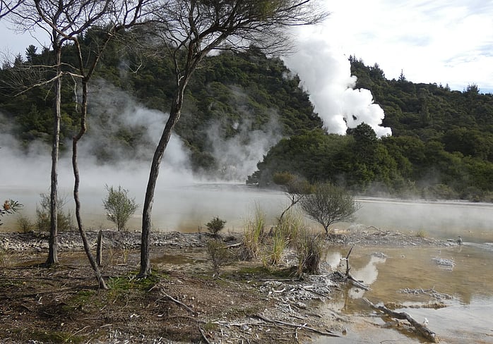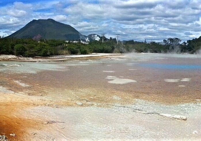 Putauaki with whānau hot pools in foreground